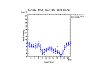 地表風速の絶対値 (z=1m の換算値, 実線は平均)