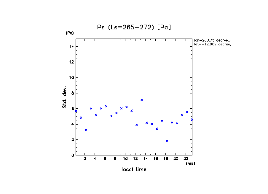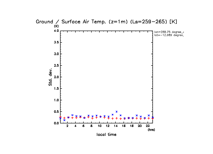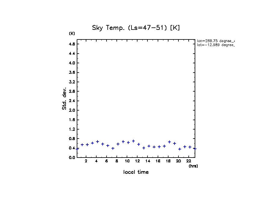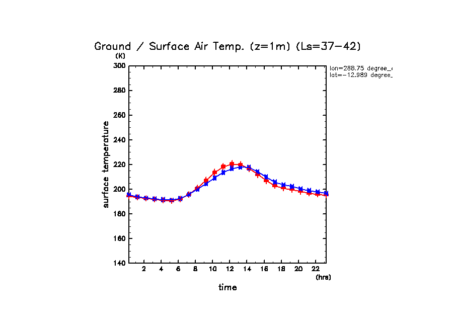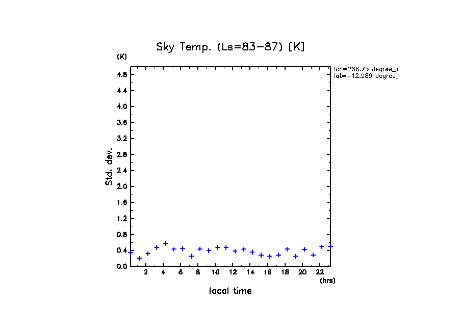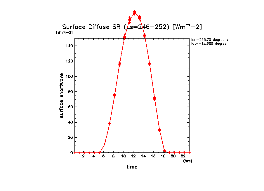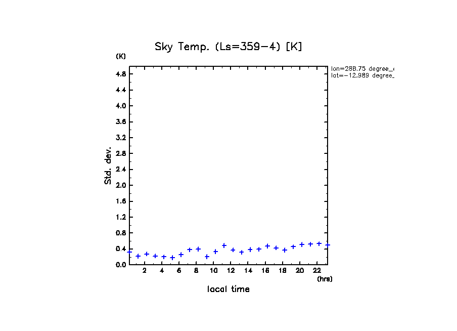 dcpam 火星計算データ図集: Melas Chasma (288.75 E, 12.989 S) (High dust case, τd=5.0)