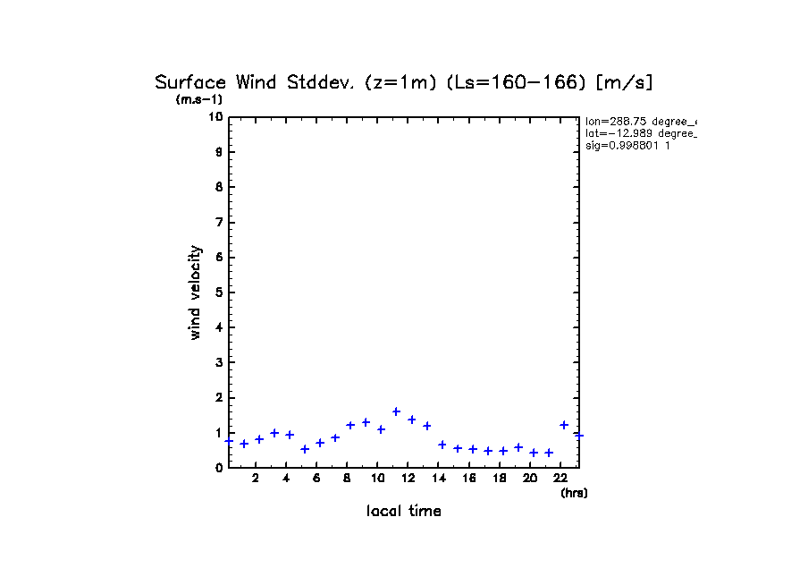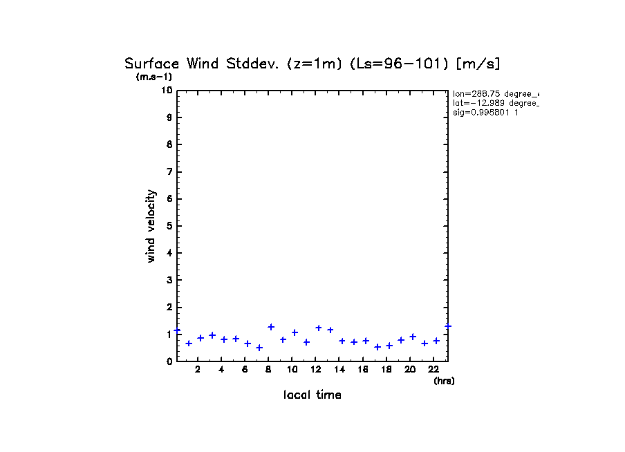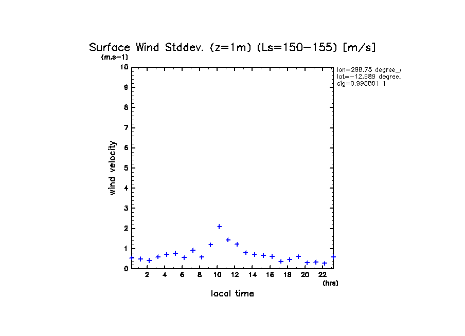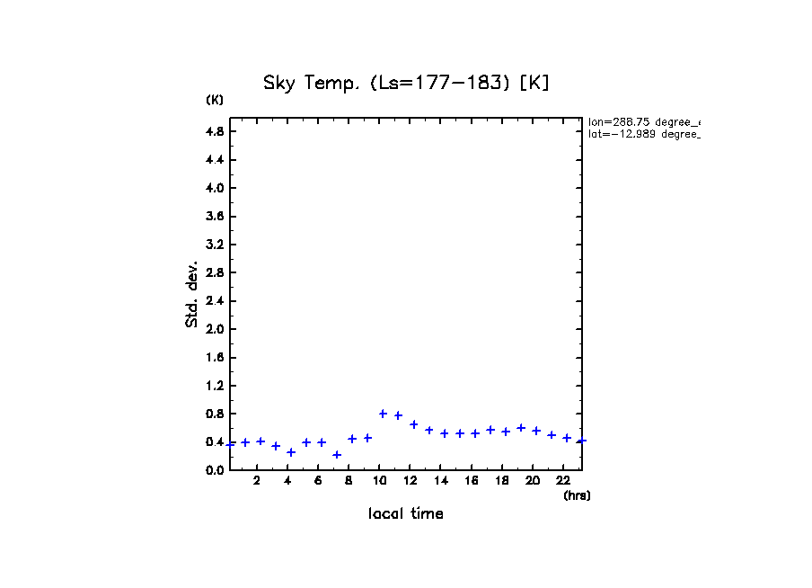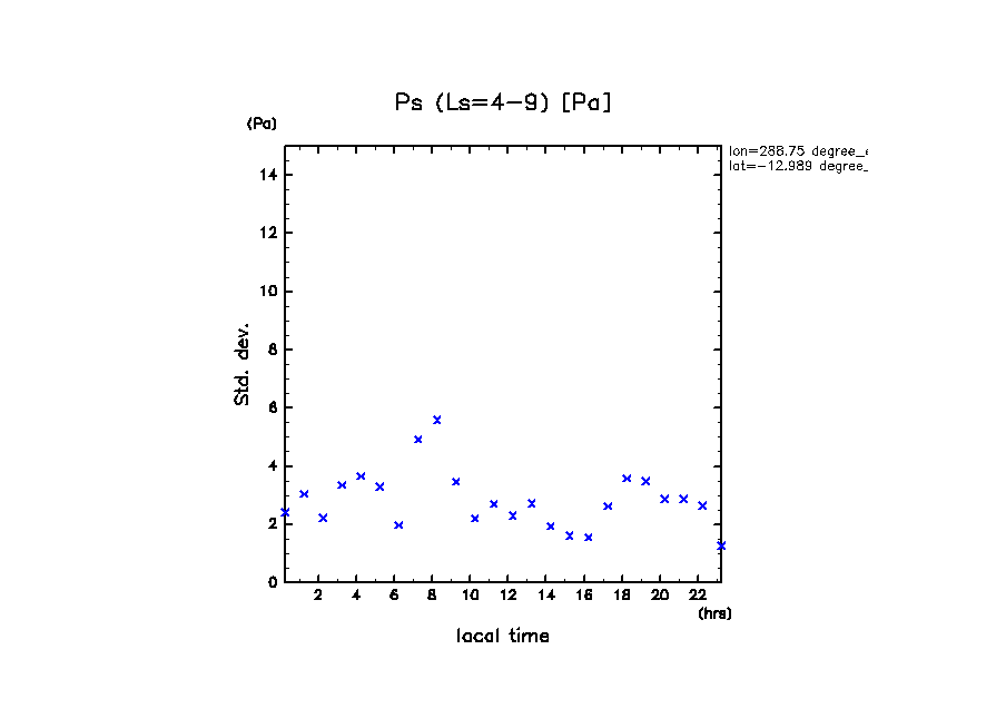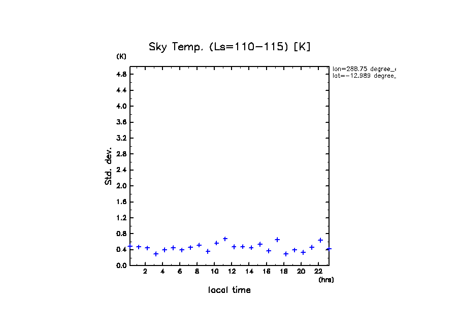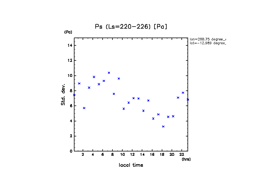 dcpam 火星計算データ図集: Melas Chasma (288.75 E, 12.989 S) (High dust case, τd=5.0)