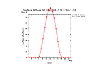 地表における太陽放射の散光成分 (下向きを正, 赤実線は平均)