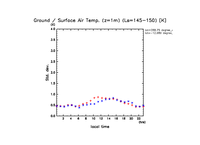 地表面温度(赤)と地表気温(青: z=1m の換算値) (実線は平均)