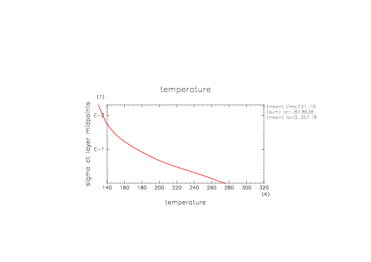 温度. 東西平均 (鉛直座標は対数プロット)