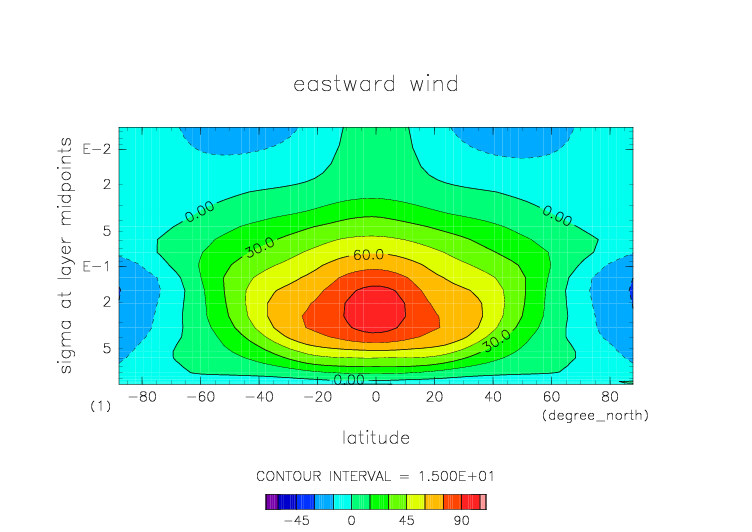 sigma=0.1 における東西風 |