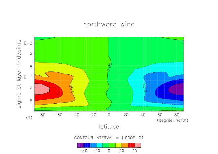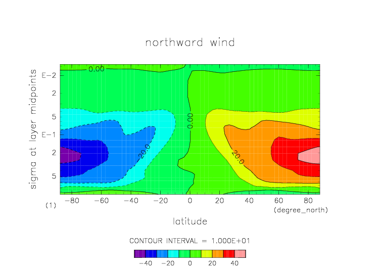 南北風. 東西平均 (鉛直座標は対数プロット) |