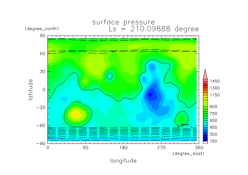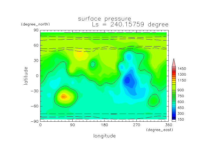 火星ダストと巻き上げ実験 DustScenario Const DOD067=0.2 水平分布の時間変化