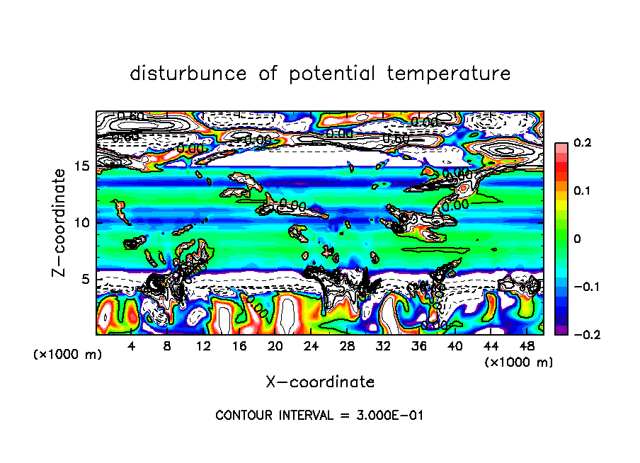 基本場の温度分布の勾配が不連続であることにより, 本来小さいことが想定されている温位・雲密度の数値拡散項が著しく大きくなるという現象が発生していた.