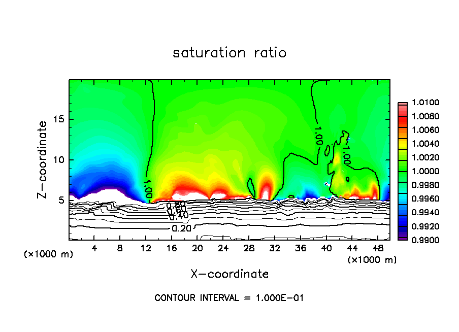 基本場の温度分布の勾配が不連続であることにより, 本来小さいことが想定されている温位・雲密度の数値拡散項が著しく大きくなるという現象が発生していた.