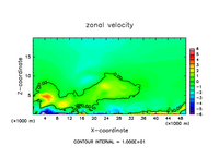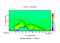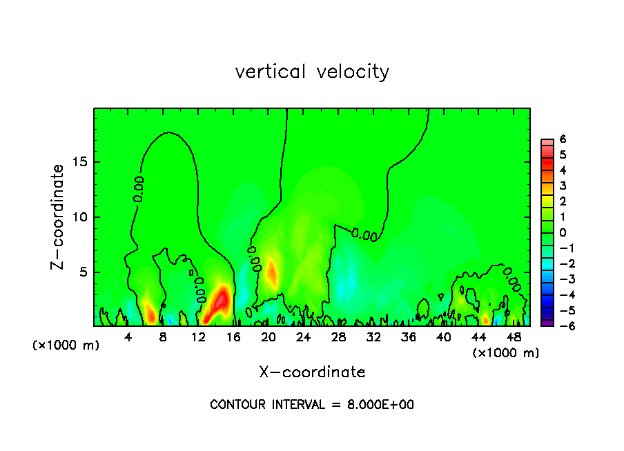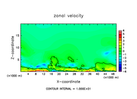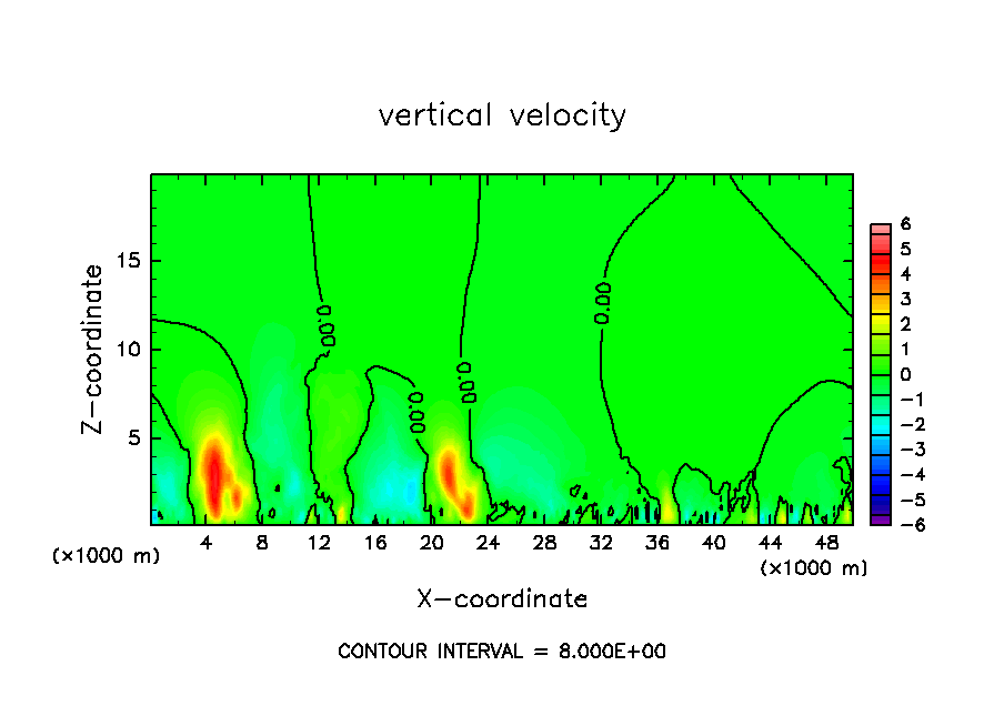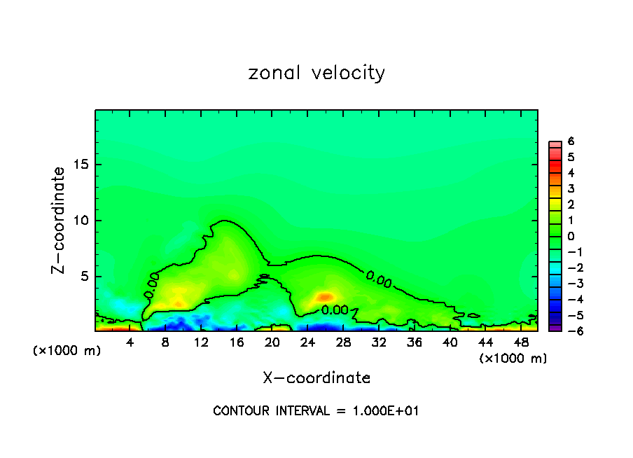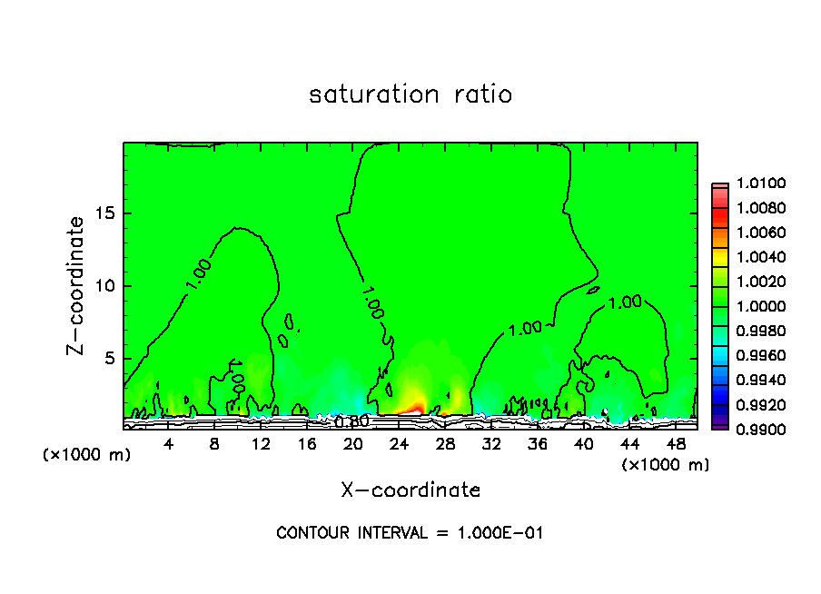 雲密度の移流項を短い時間ステップで評価したテスト計算.