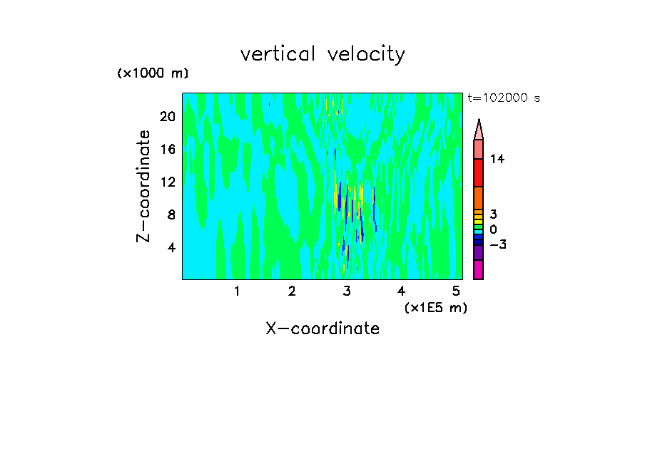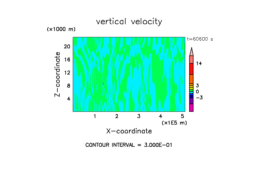 - 高度 300 m に振幅 0.3 K のランダムな擾乱を置く