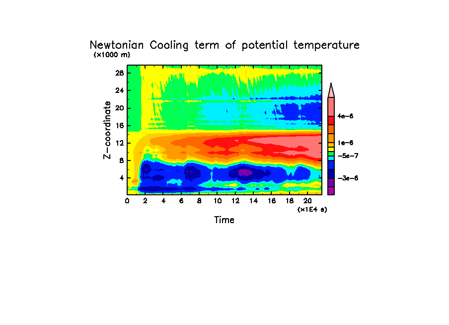 - -2 [K] * (15 [km] - z)/5 [km] [K/day]