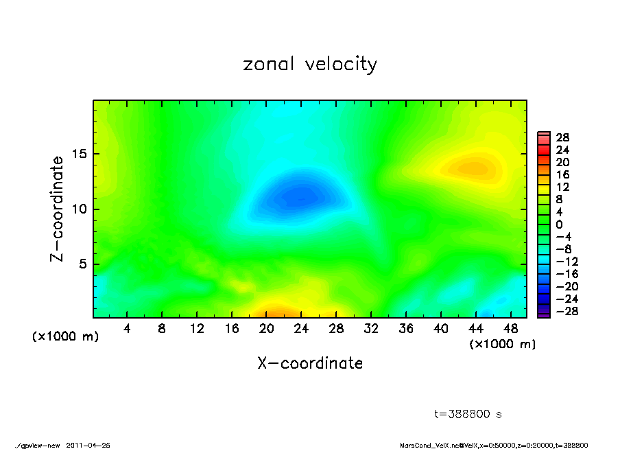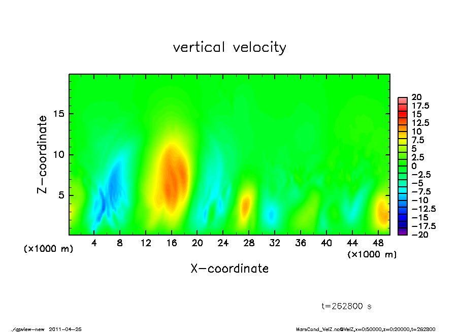 水平 50 km, 鉛直 20 km の領域で空間格子間隔を 250 m として計算を行なった.