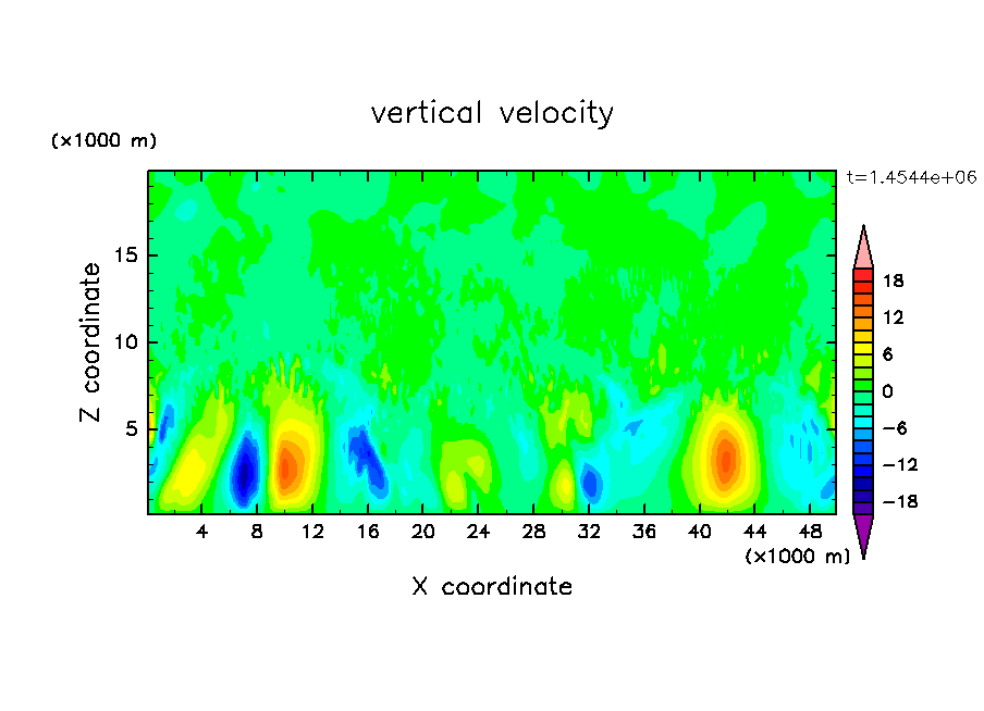雲粒の落下・雲粒の荷重効果を考慮し, 水平 50 km, 鉛直 20 km の領域で計算を行なった.