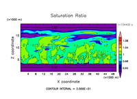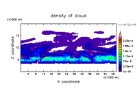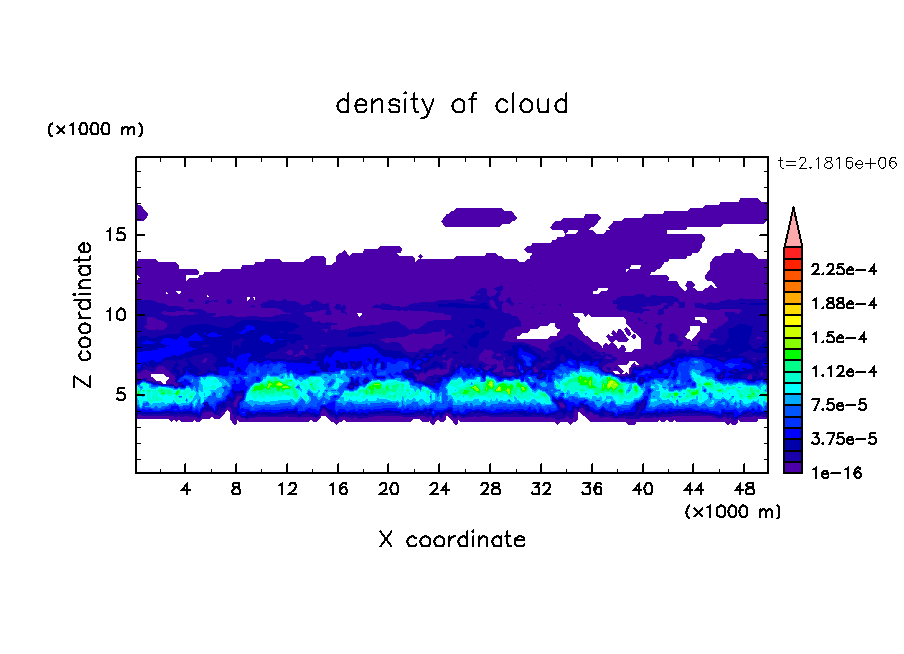 雲粒の落下・雲粒の荷重効果を考慮し, 水平 50 km, 鉛直 20 km の領域で計算を行なった.
