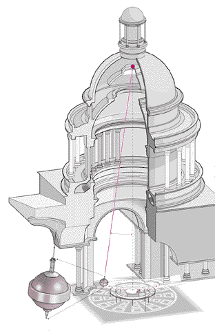 1851年フーコーはパリのパンテオン寺院で 地球が自転していることを証明する実験を行った.