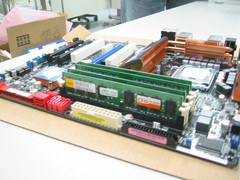 メモリをソケットに差し込みます. 向きが逆だと差し込めないので向きに注意. |