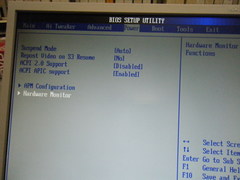 左右の方向キーを操作し, power のタブを表示し, 一番下のHardware Moniter にカ ーソルをあわせ, ENTERを押します. |