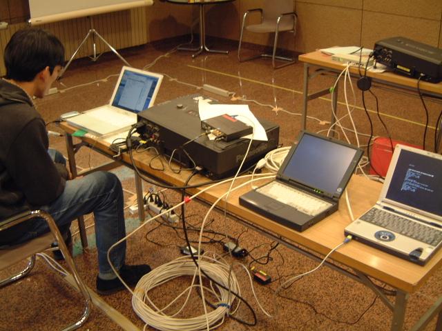 DVTS 受信 PC (右端) と計測用 PC (中央)