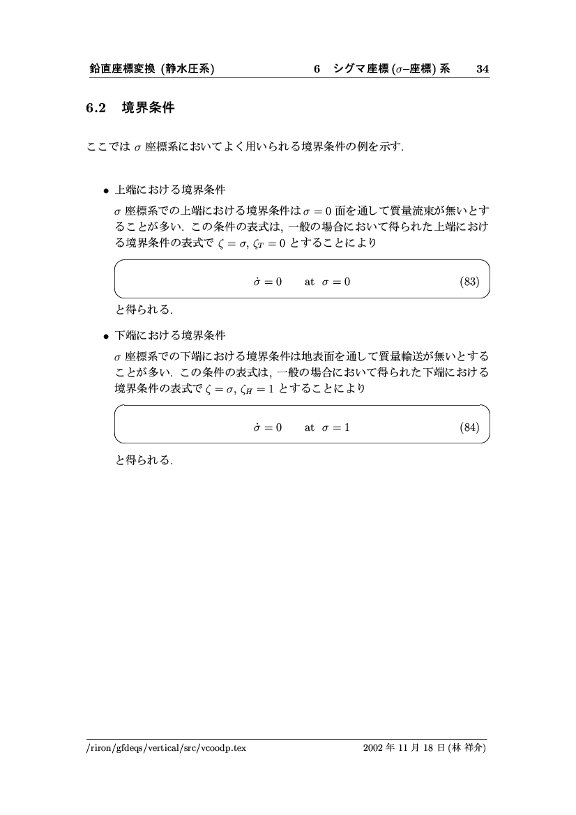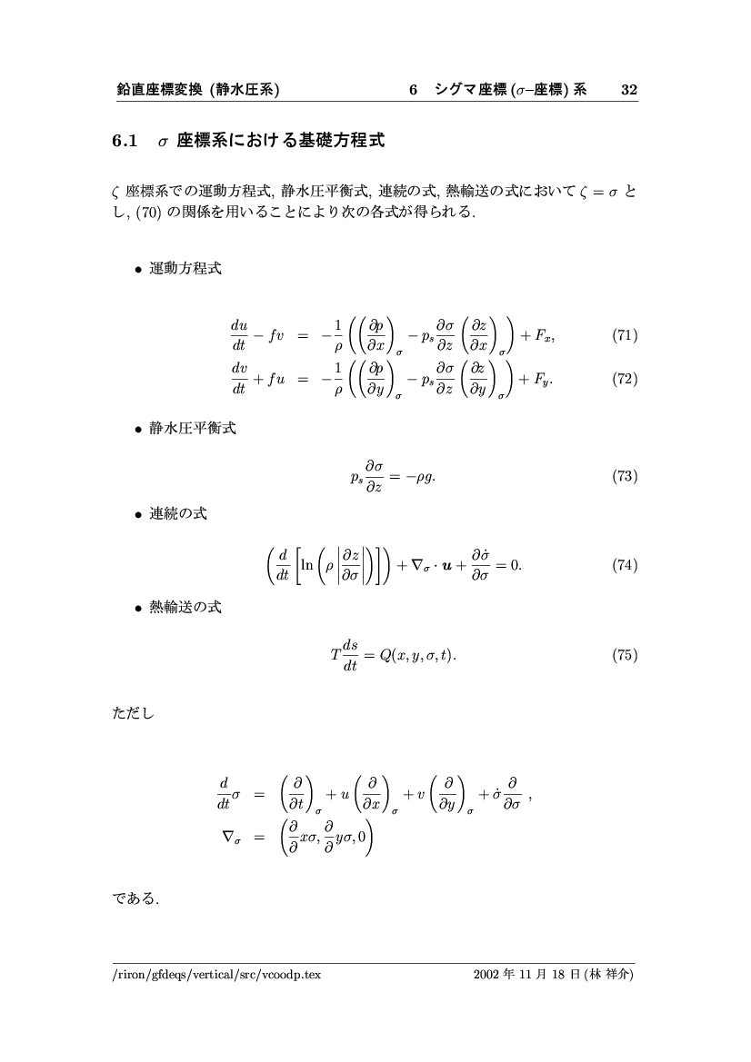 鉛直座標変換 (静水圧系) -- p-座標, ln p-座標, σ-座標 -- 公開領域