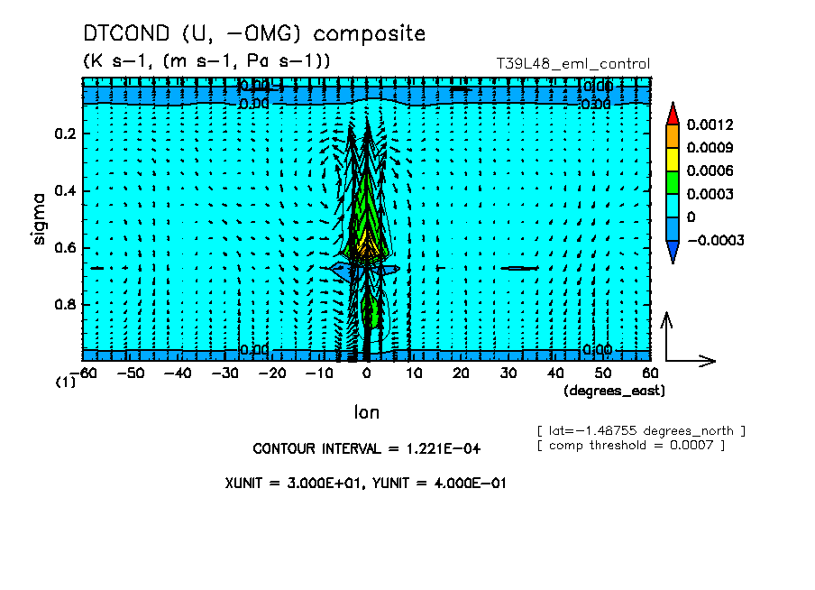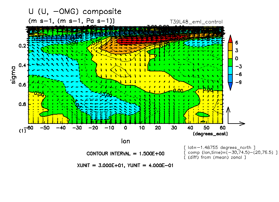 東西風 (sigma=0.85) 収束, 温度(sigma=0.25) (目測) |