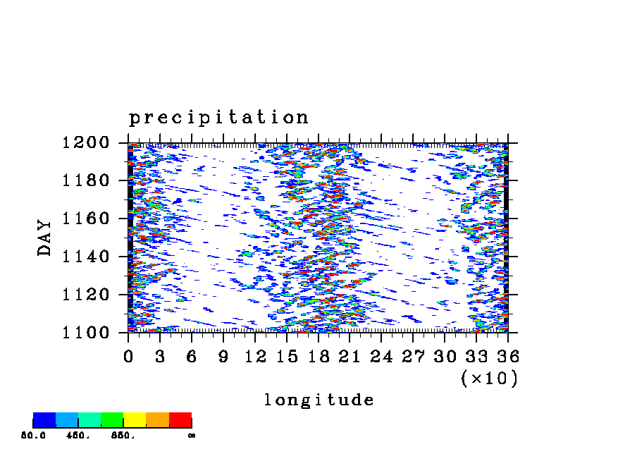 COS(x) 波長 2 実験シリーズ (paCC) [赤道 x-t, 東西平均からの偏差]