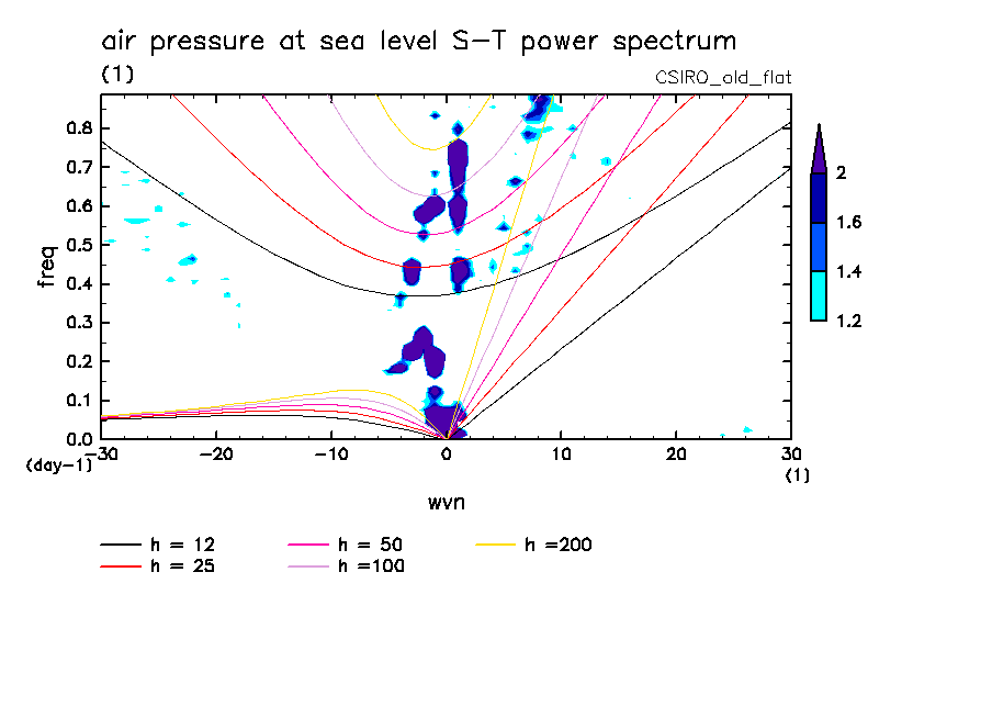 << Aqua Planet: Wheeler and Kiladis (1999) Plot from 'flat' Experiment >> group: CSIRO (Commonwealth Scientific and Industrial Research Organization, Aspendale, Victoria, Australia) model: CSIRO conformal-cubic model (CCAM-05a, old)