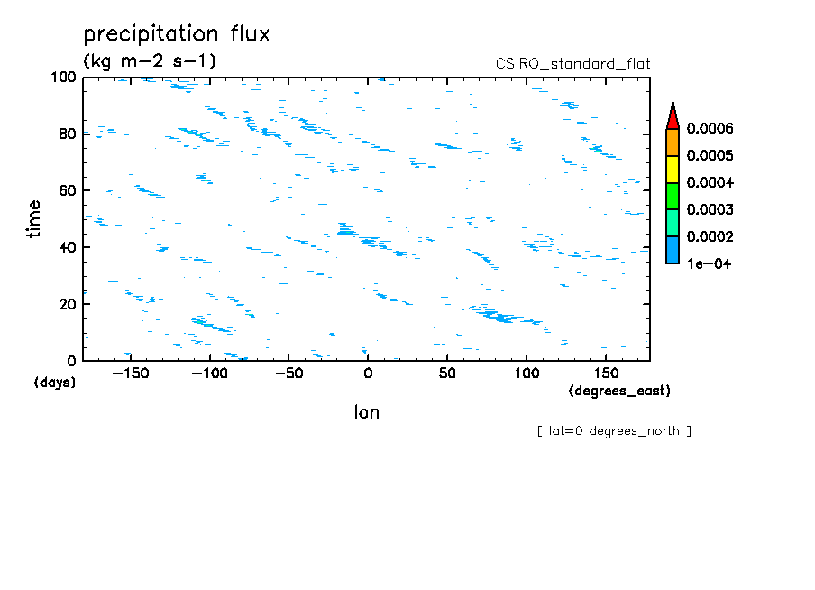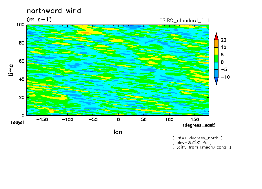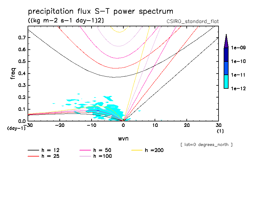 << Aqua Planet: Wheeler and Kiladis (1999) Plot from 'flat' Experiment >> group: CSIRO (Commonwealth Scientific and Industrial Research Organization, Aspendale, Victoria, Australia) model: CSIRO conformal-cubic model (CCAM-05e, standard)