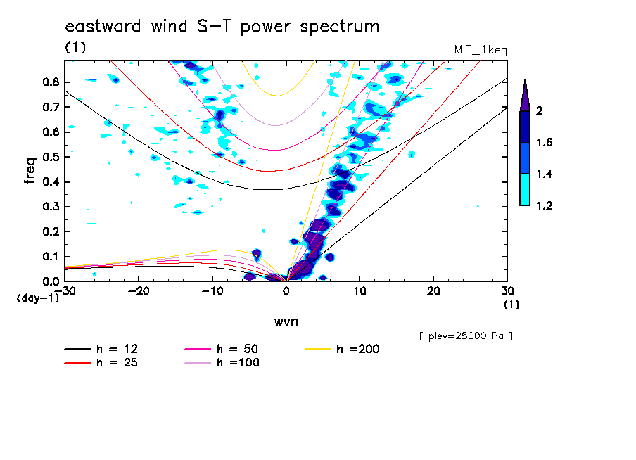 << Aqua Planet: Wheeler and Kiladis (1999) Plot from '1keq' Experiment >> group: MIT (Massachusetts Institute of Technology, Cambridge, MA, USA) model: MIT-GCM