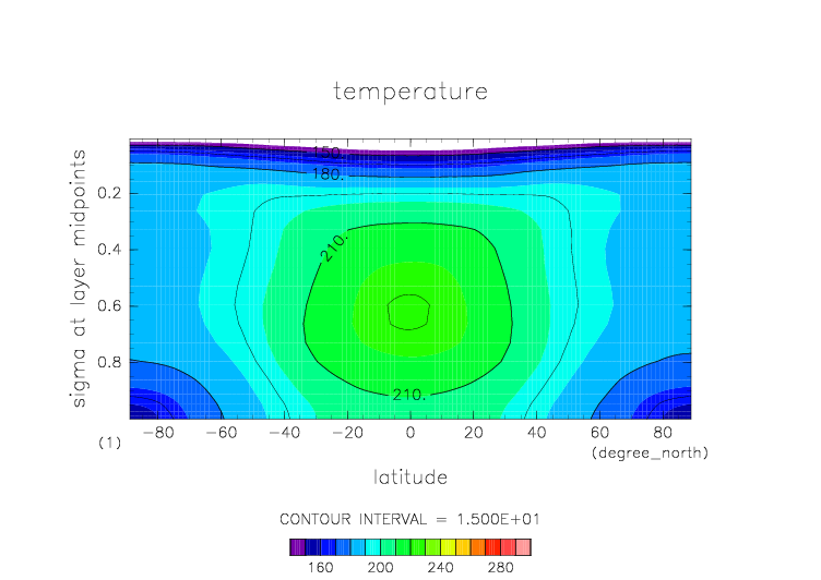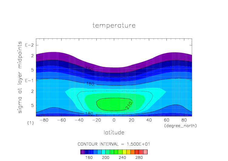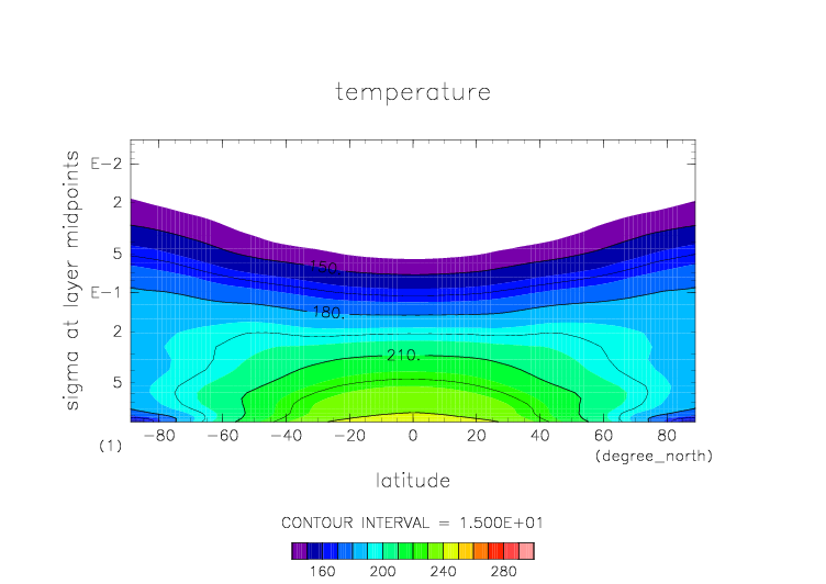 温度. 東西平均 (鉛直座標は対数プロット)