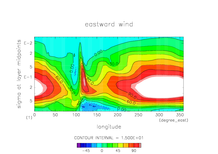 sigma=0.077 における東西風