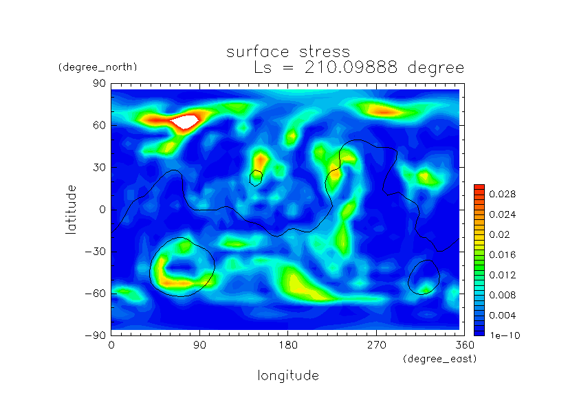 火星ダストと巻き上げ実験 DustScenario Const DOD067=0.2 水平分布の時間変化