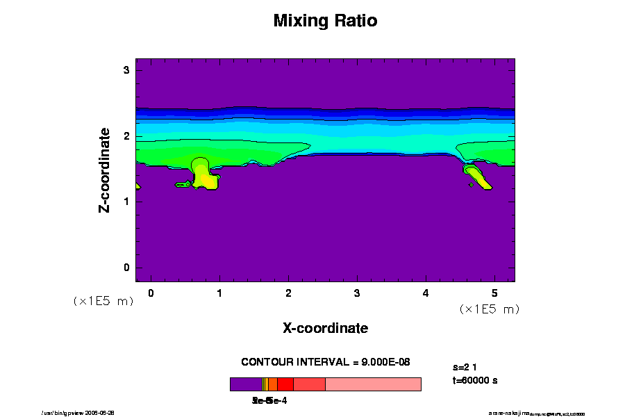 - この計算では, 基本的に熱源が存在しない. Nakajima et al (2000) で設定した「下部境界で温度一定」は考慮していない.