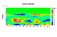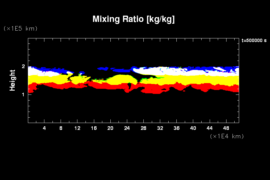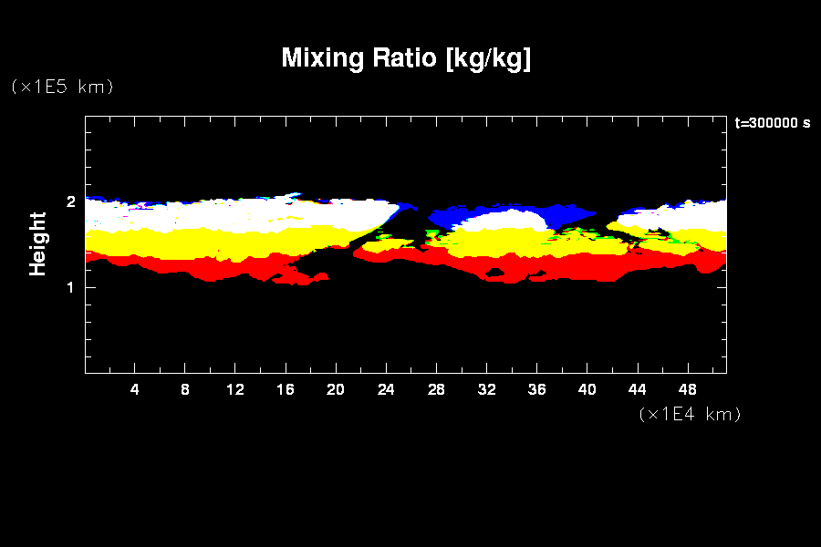 木星大気における平均的な流れ場と凝結成分の分布を数値的に求める.