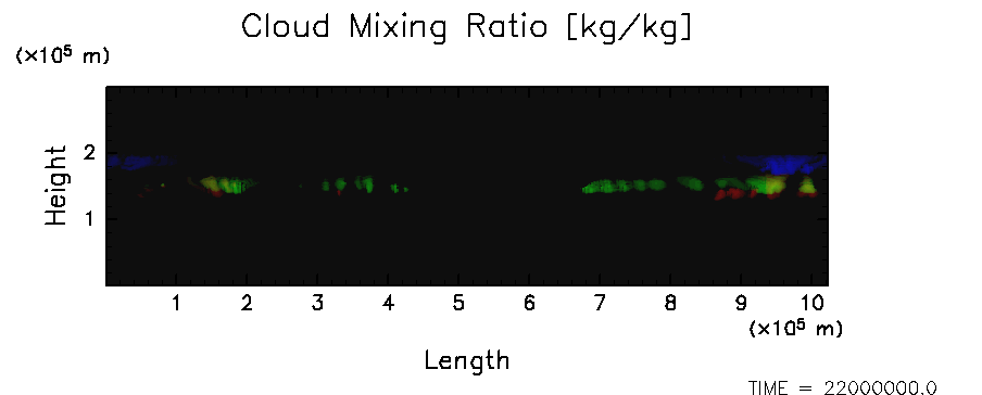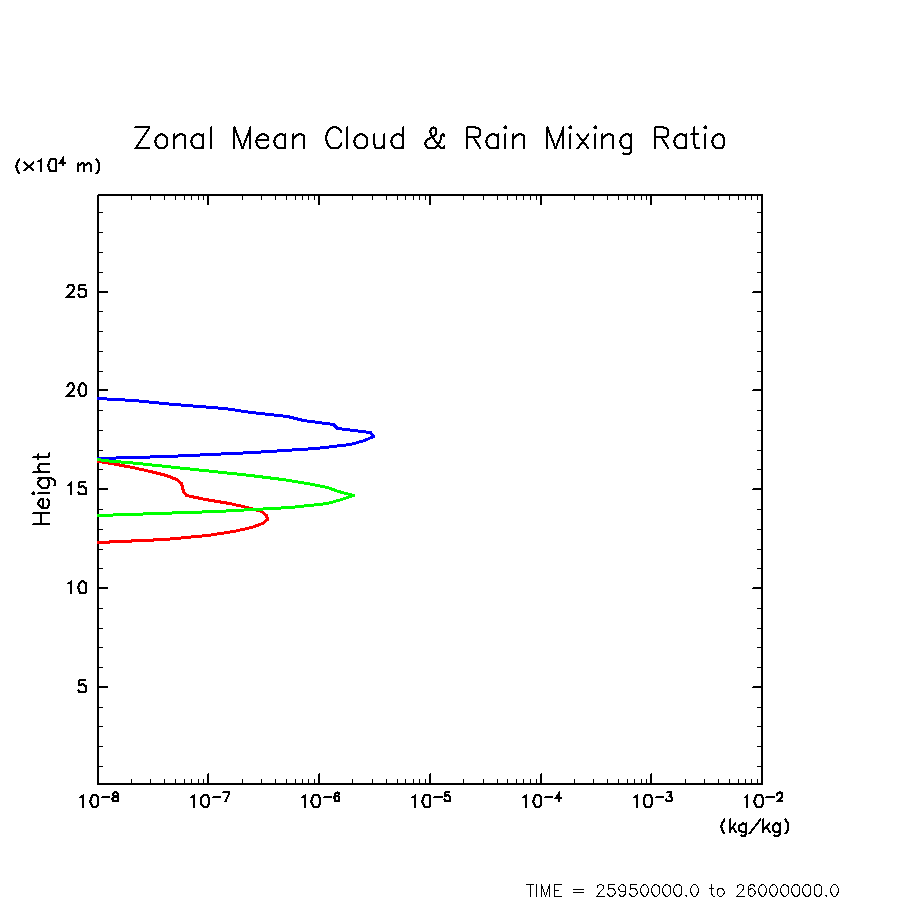 凝結物混合比の水平・時間平均(赤: H2O, 緑: NH4SH, 青: NH3)