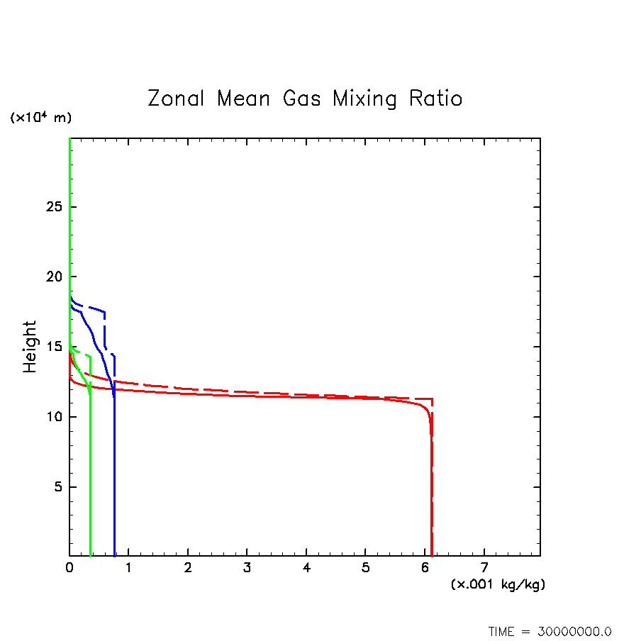 凝結成分気体混合比の水平・時間平均(赤: H2O, 緑: H2S, 青: NH3)