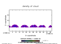 deepconv/arare4 : 主成分凝結を考慮した湿潤対流実験(中層一様冷却・下層一様加熱, 臨界飽和比 1.35 の場合) : 凝結時に雲密度の閾値を設定する実験(T5-5, Alpha5.0-4, center4 実験, 雲密度に乱流拡散を考慮) サムネイル画像置き場ディレクトリ