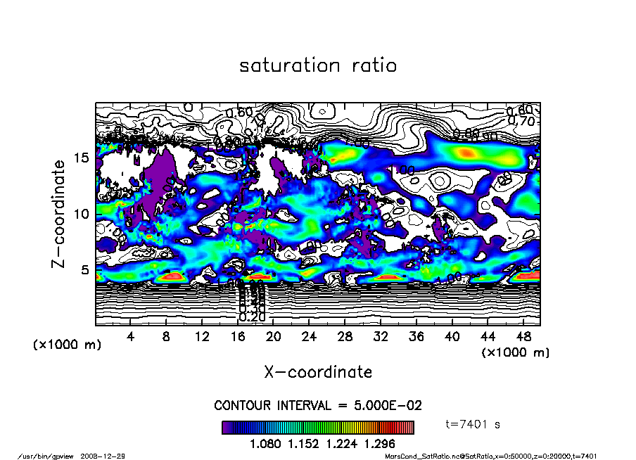 これを防ぐために, 一定以上の雲密度でない場合に飽和比が 1 以上でも凝結しないように閾値を設けて計算を行ってみた.