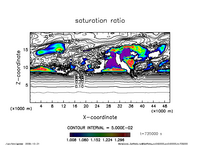deepconv/arare4 : 主成分凝結を考慮した湿潤対流実験(中層一様冷却・下層一様加熱, 雲粒落下を考慮, 臨界飽和比 1.35 の場合)