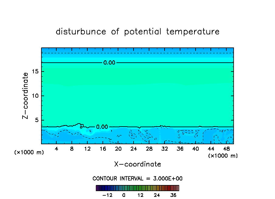 対流が次々と発生する際の雲の振る舞いを調べる為に, 初期条件としてランダムな温位擾乱を与えて計算を行なった.