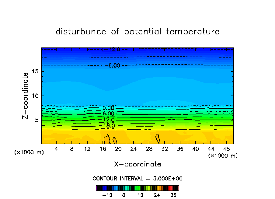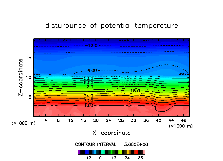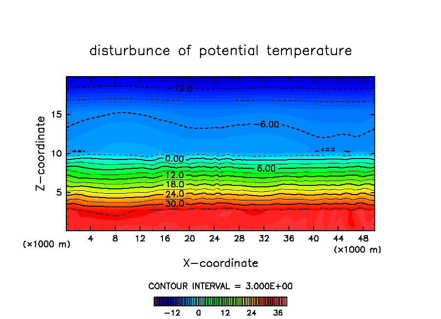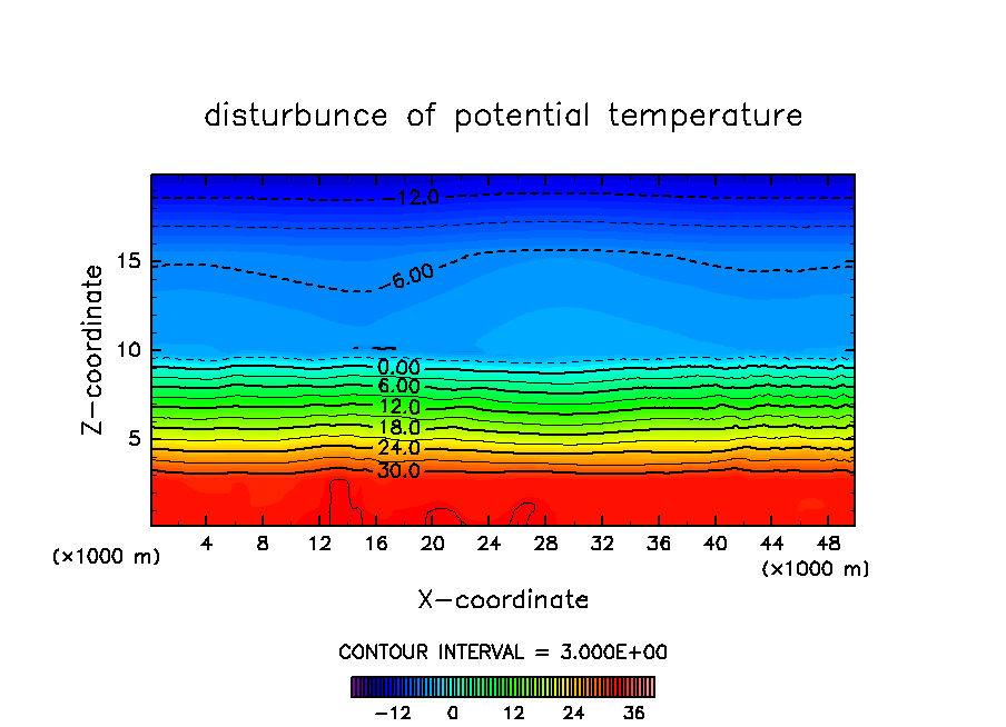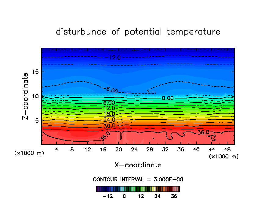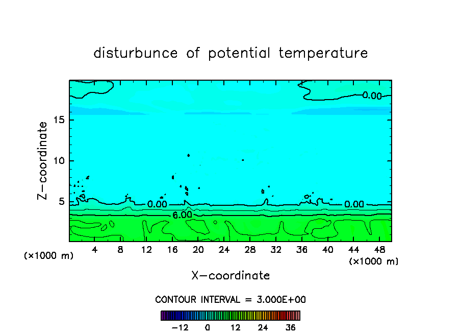 対流が次々と発生する際の雲の振る舞いを調べる為に, 初期条件としてランダムな温位擾乱を与えて計算を行なった.