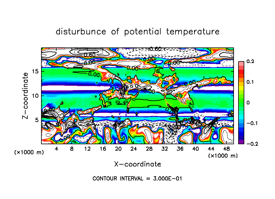 基本場の温度分布の勾配が不連続であることにより, 本来小さいことが想定されている温位・雲密度の数値拡散項が著しく大きくなるという現象が発生していた.