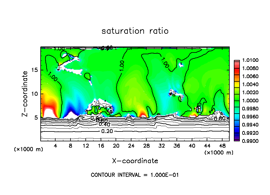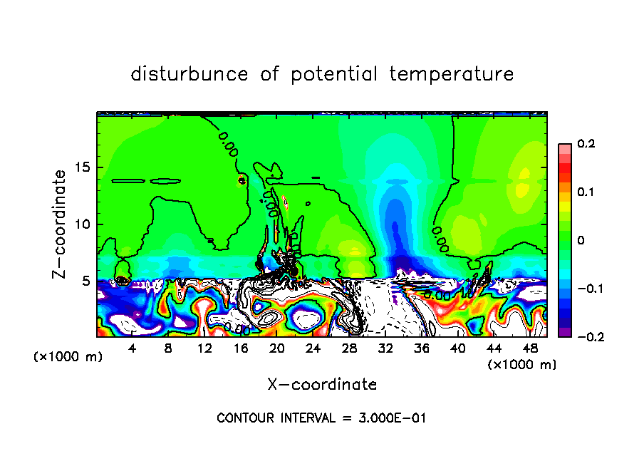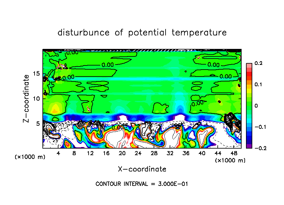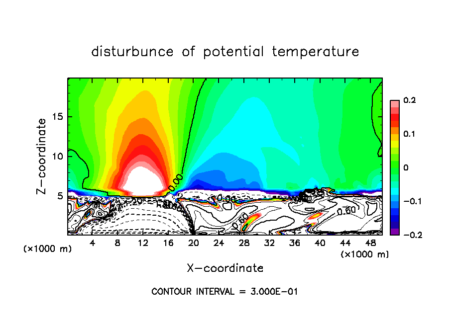 基本場の温度分布の勾配が不連続であることにより, 本来小さいことが想定されている温位・雲密度の数値拡散項が著しく大きくなるという現象が発生していた.