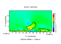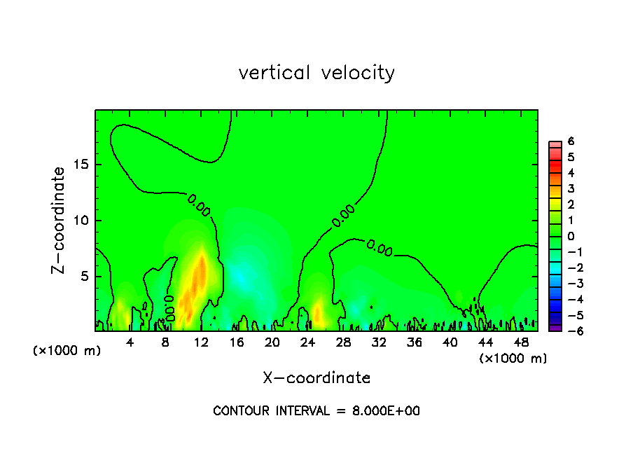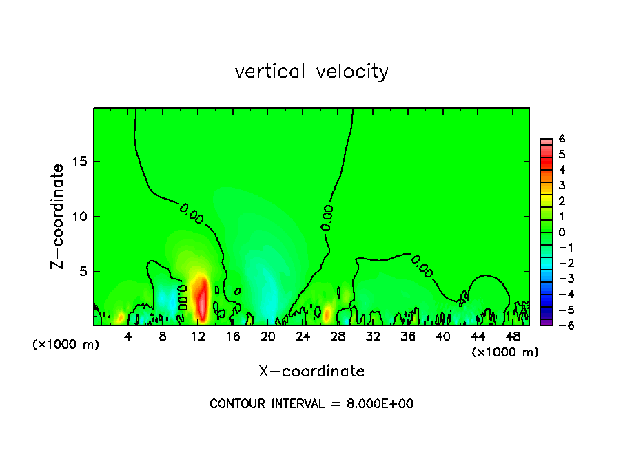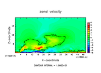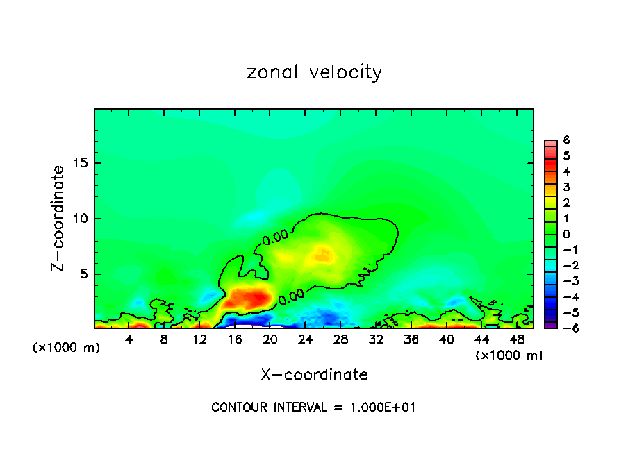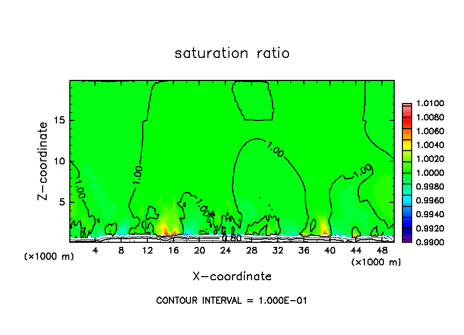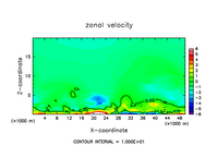 雲密度の移流項を短い時間ステップで評価したテスト計算.