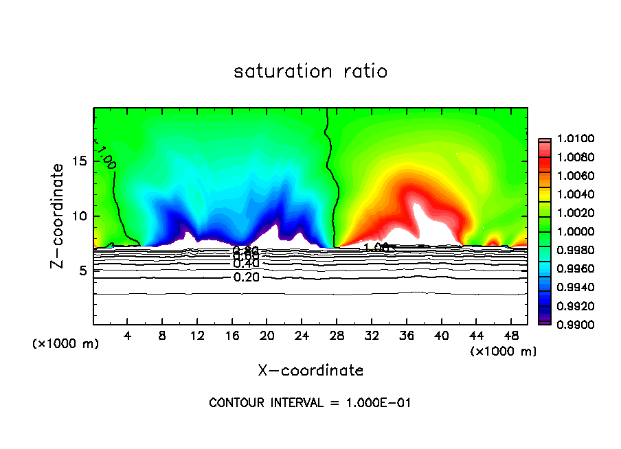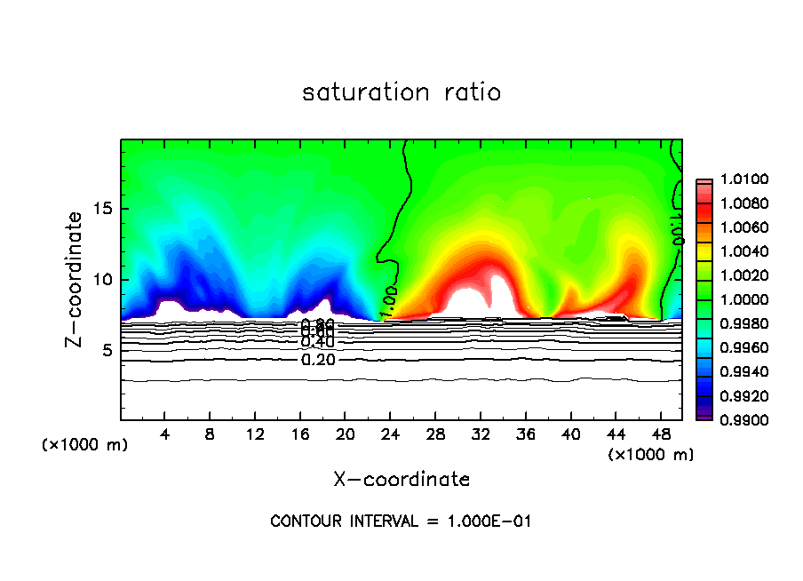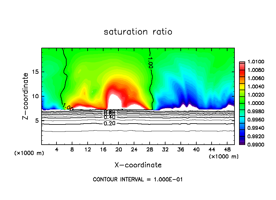 deepconv/arare4 : 主成分凝結を考慮した湿潤対流実験(中層一様冷却・下層一様加熱, 臨界飽和比 1.0, 地表面温度 165 K の場合)