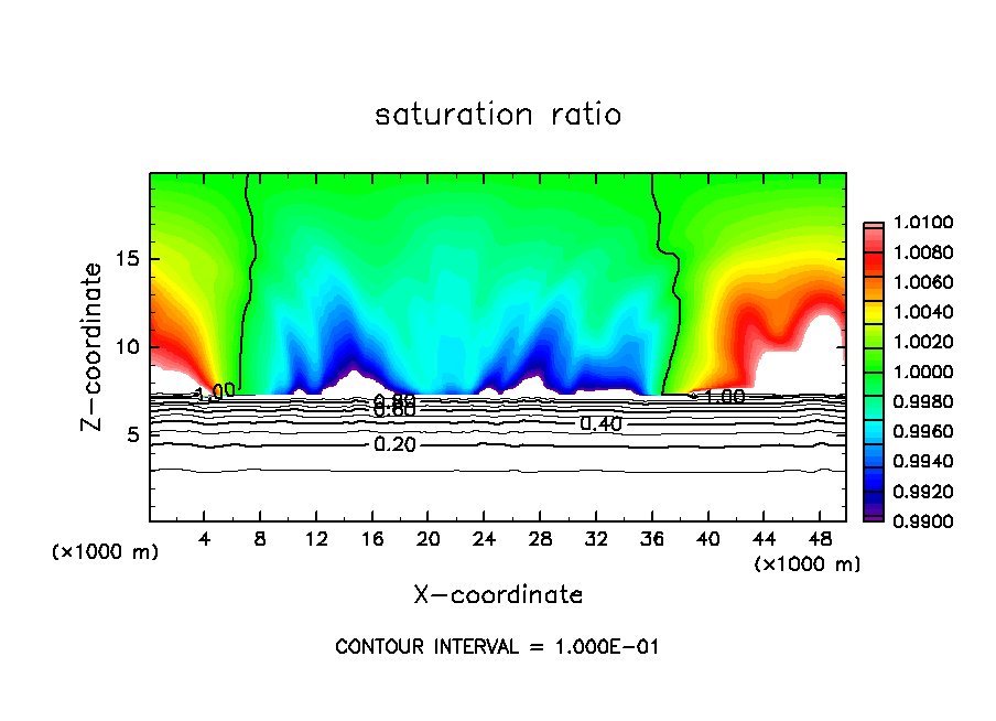 deepconv/arare4 : 主成分凝結を考慮した湿潤対流実験(中層一様冷却・下層一様加熱, 臨界飽和比 1.0, 地表面温度 165 K の場合)