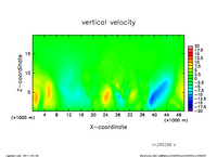 水平 50 km, 鉛直 20 km の領域で空間格子間隔を 250 m として計算を行なった.
