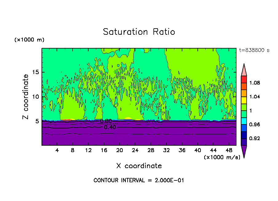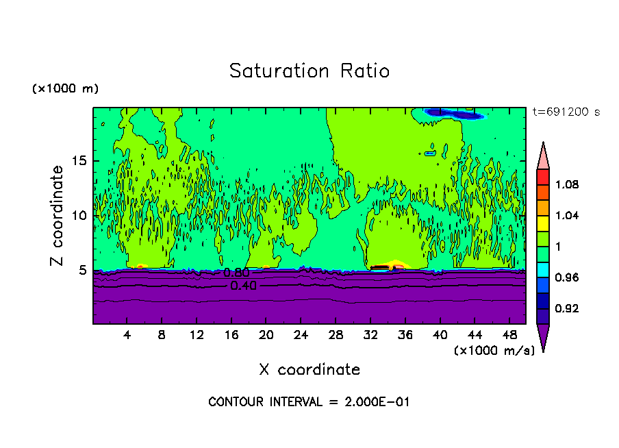 雲粒の荷重効果を考慮し, 水平 50 km, 鉛直 20 km の領域で計算を行なった.