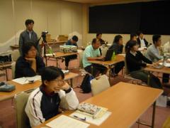 講義中。後ろでは撮影係は小西さん。 |