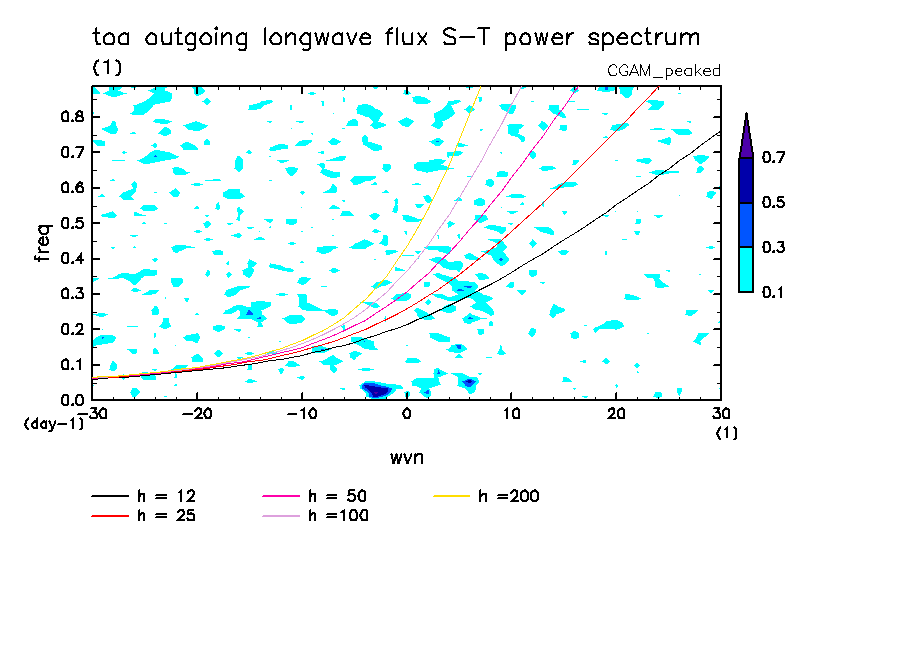 << Aqua Planet: Wheeler and Kiladis (1999) Plot from 'peaked' Experiment >> group: CGAM (Centre for Global Atmospheric Modelling, University of Reading, UK) model: HadAM3