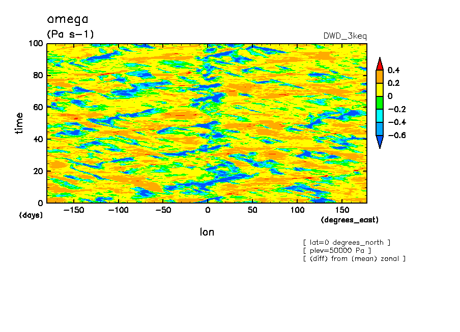 << Aqua Planet: Wheeler and Kiladis (1999) Plot from '3keq' Experiment >> group: DWD (Institut fur Physik der Atmosphere, Universitat Mainz and Deutscher Wetterdienst, Germany) model: GME icosahedral-hexagonal grid point model