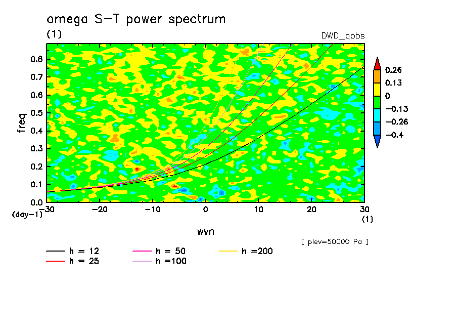 << Aqua Planet: Wheeler and Kiladis (1999) Plot from 'qobs' Experiment >> group: DWD (Institut fur Physik der Atmosphere, Universitat Mainz and Deutscher Wetterdienst, Germany) model: GME icosahedral-hexagonal grid point model